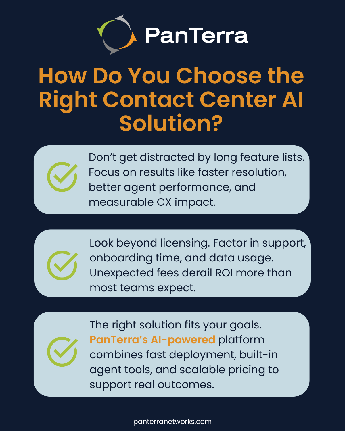 When evaluating contact center AI solutions, outcomes matter more than long feature lists.